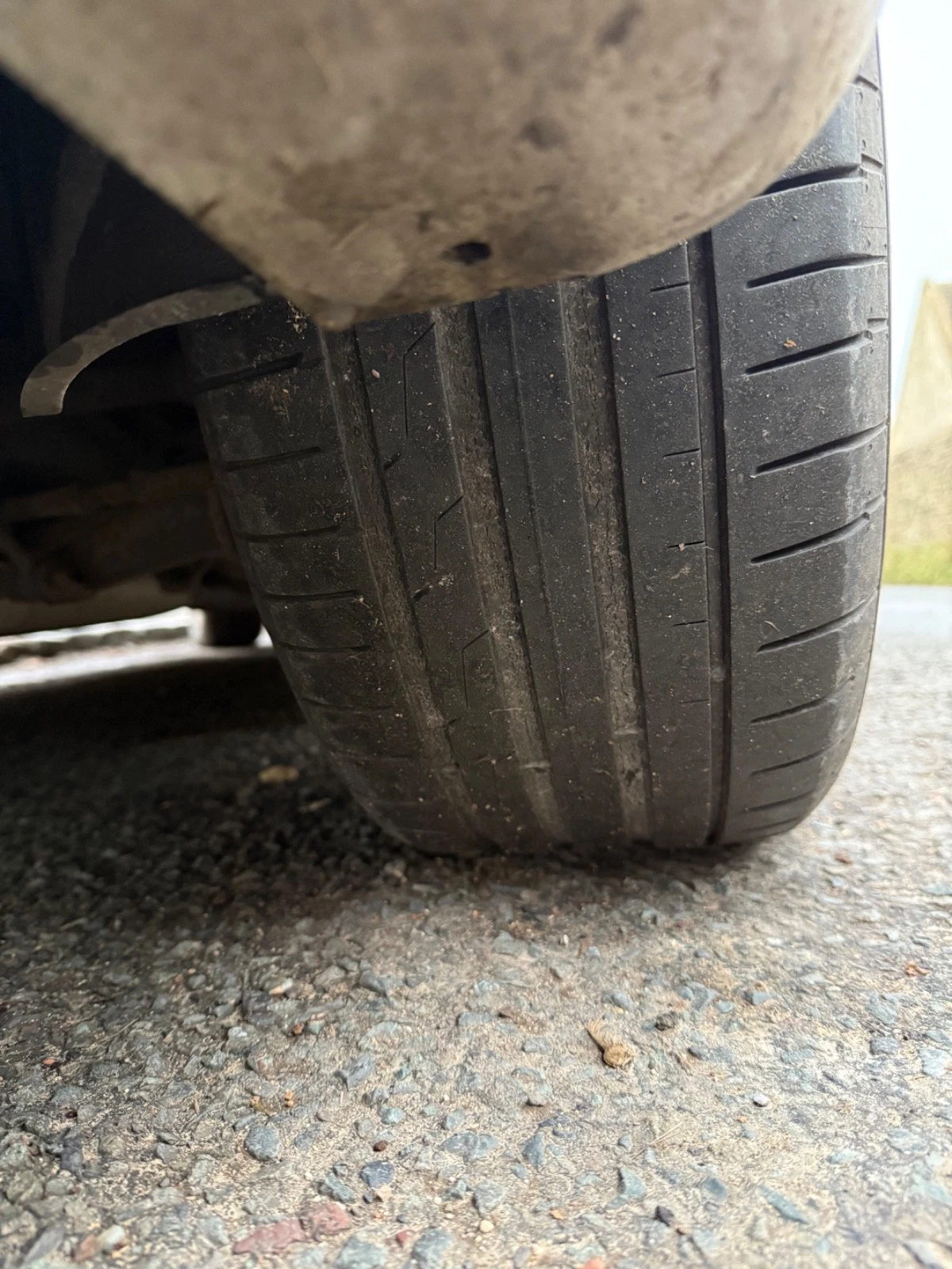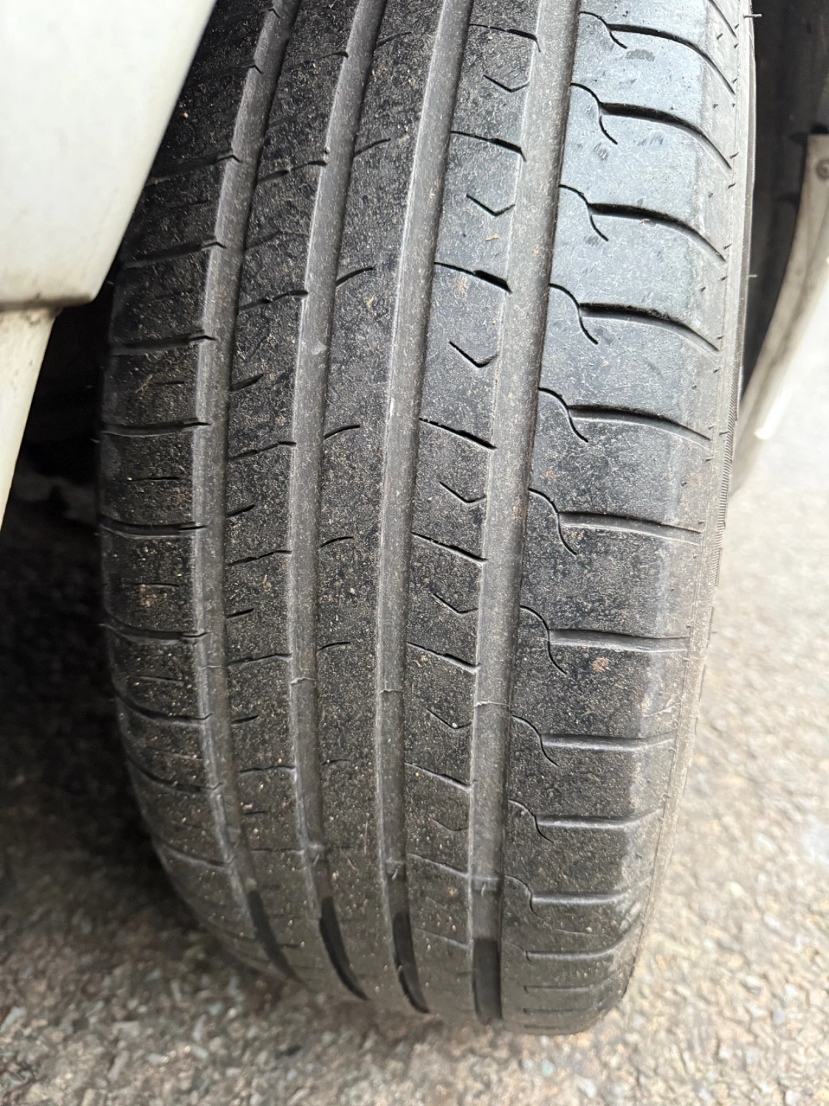 The tyres are all safe, legal, and evenly worn across the tread. The fronts have more tread remaining than the rear, but none are near the wear markers.